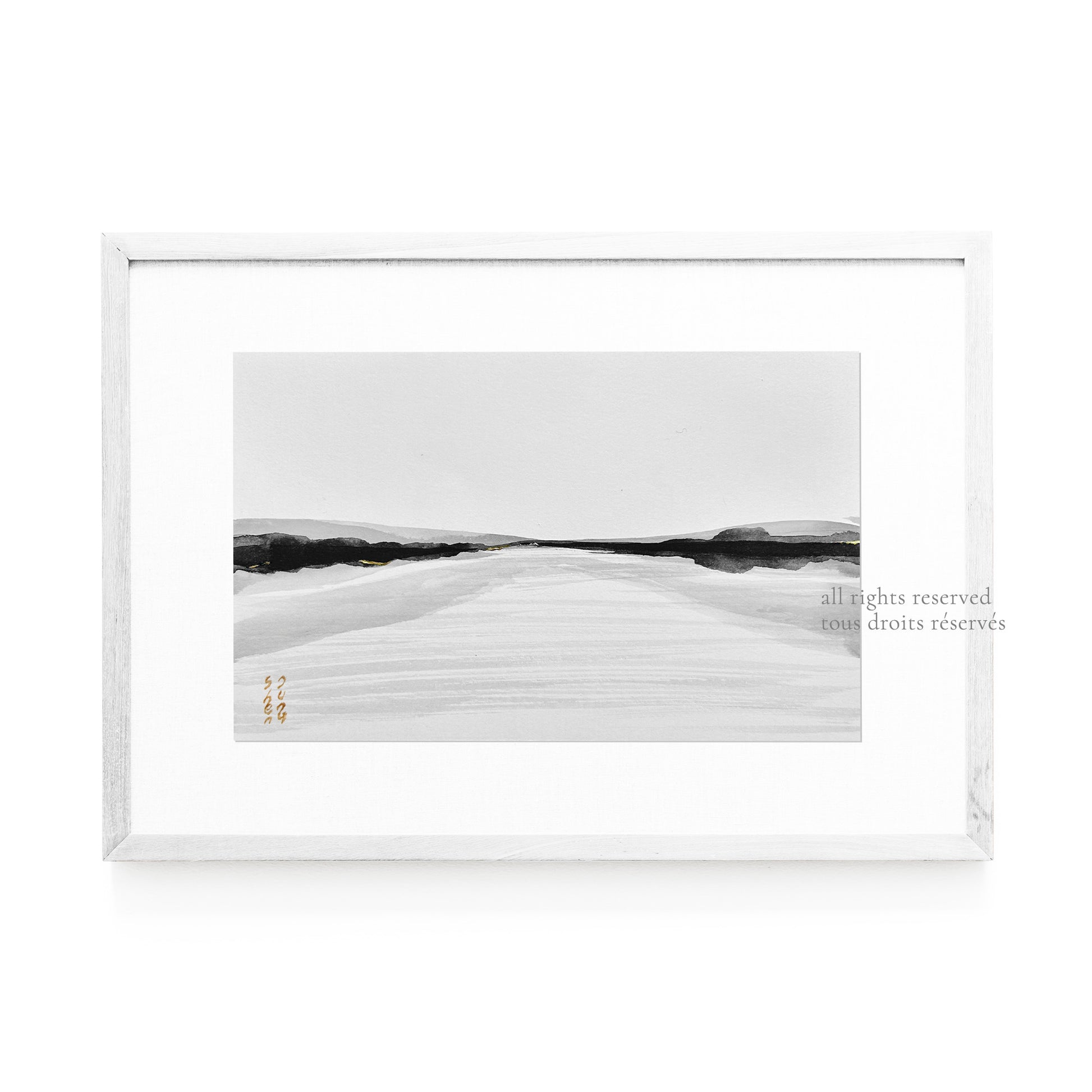 La Seine, où le silence chuchote en flux et reflux, inspirant le calme des pensées présentes. Ce petit tableau peut être combiné avec La Seine, Silence Flow II pour faire un diptyque. Au bord de la Seine, les mouvements changent. Dans cette Scene II, l'eau est plus calme, s'étendant vers les côtés, où l'on peut voir le va-et-vient des deux côtés du quai et du bord de la rivière.