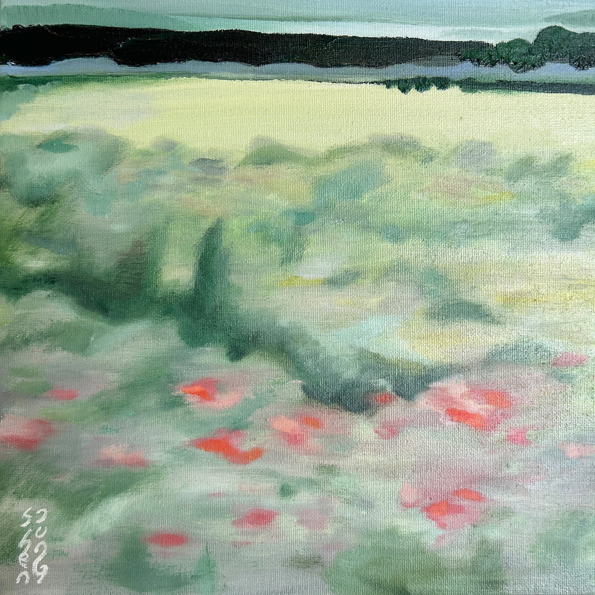 Les couches de verdure, superposées les unes sur les autres, se mêlent à la Seine et au ciel, tandis que la couleur coquelicot orne ce paysage. En cet instant, sur quelle belle chose vous regardez-vous ?