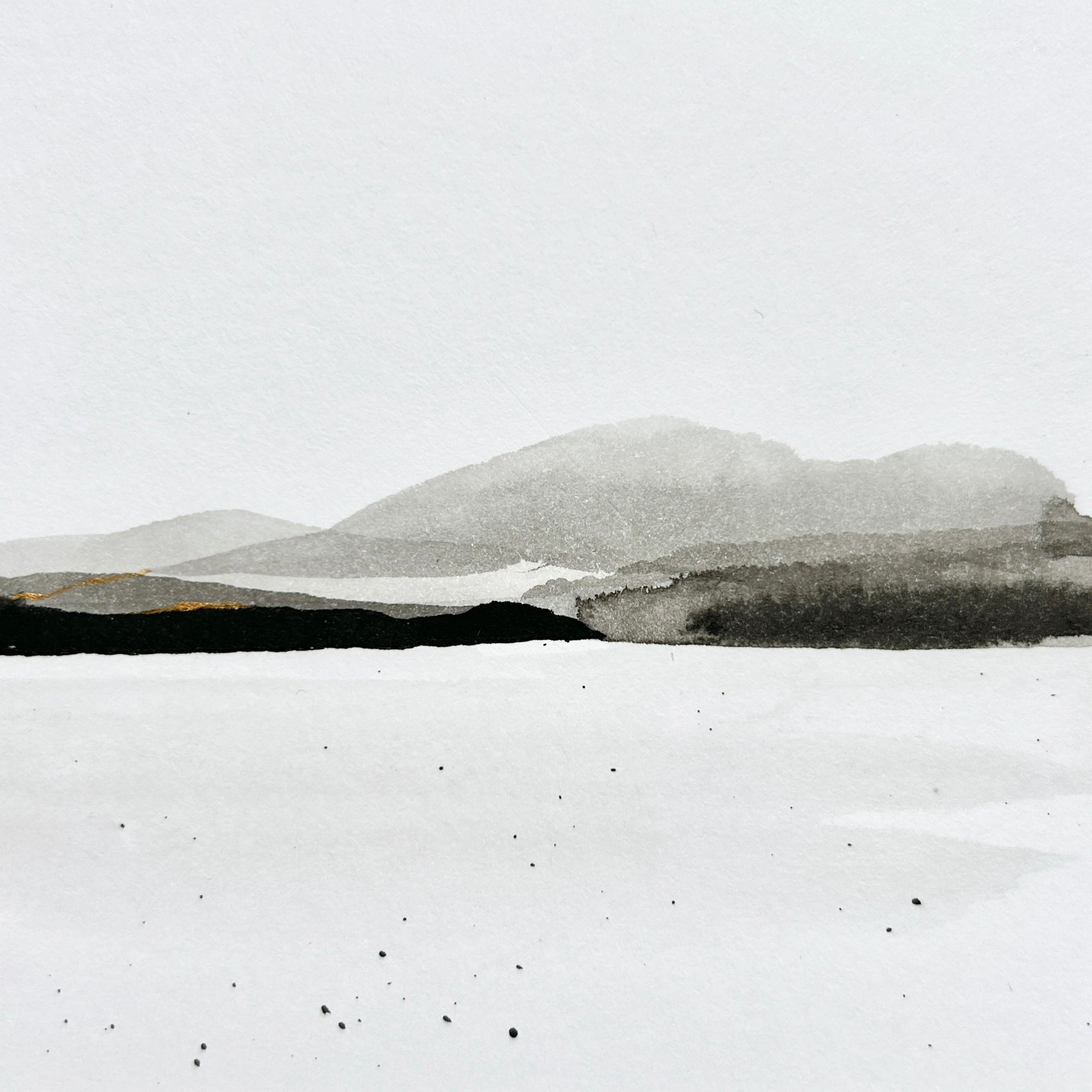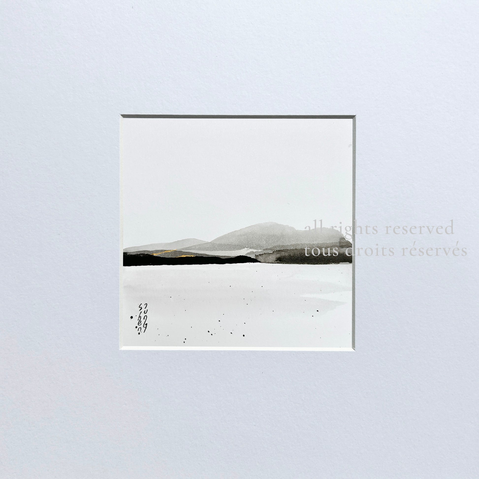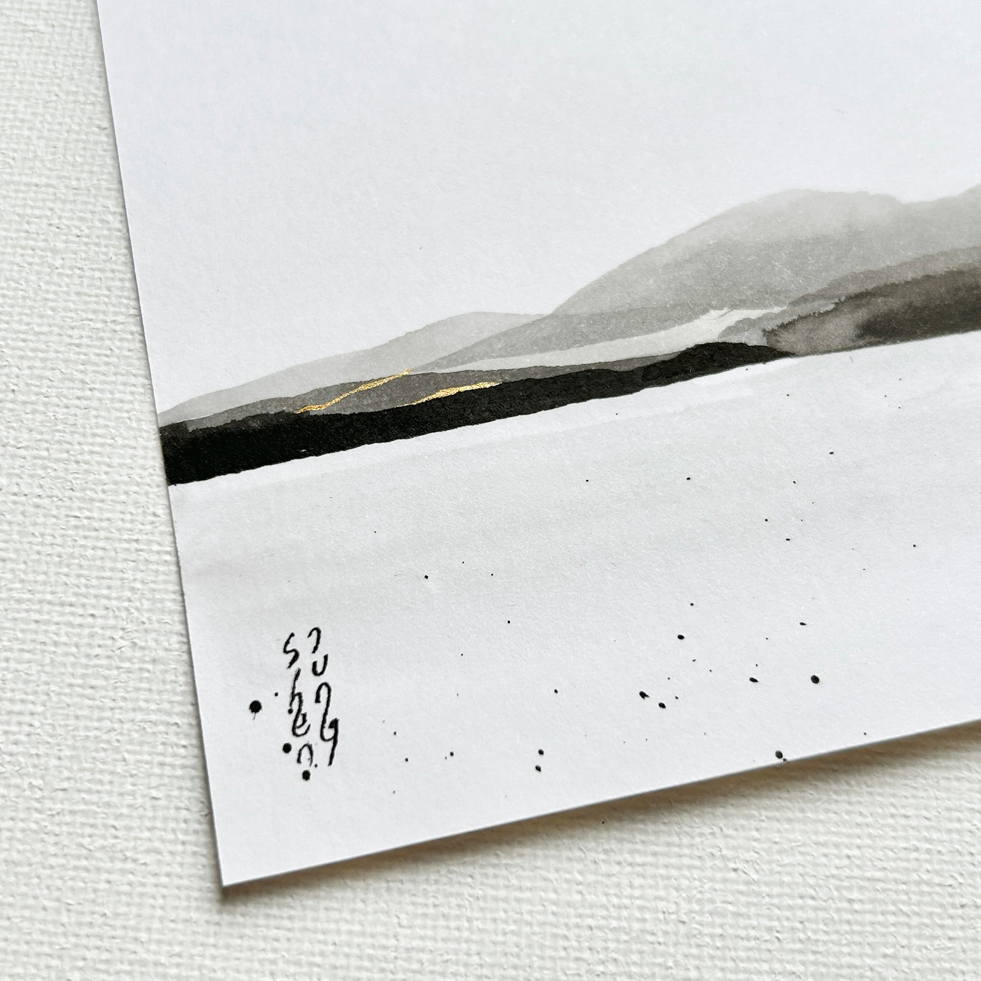 • Peinture lavis en Encre de Chine & Pigment doré sur papier lavis technique