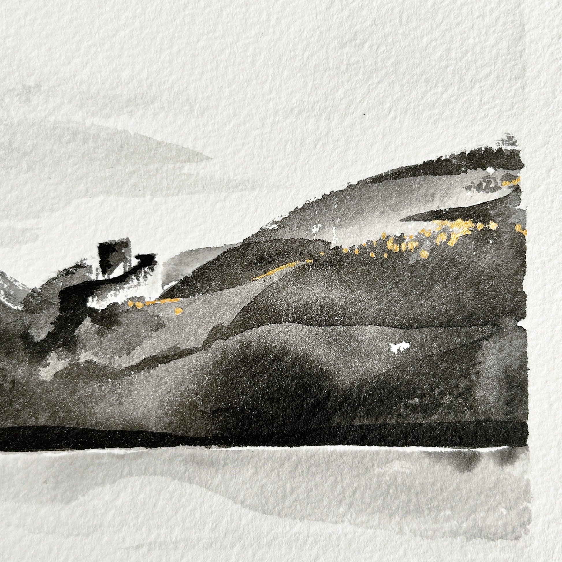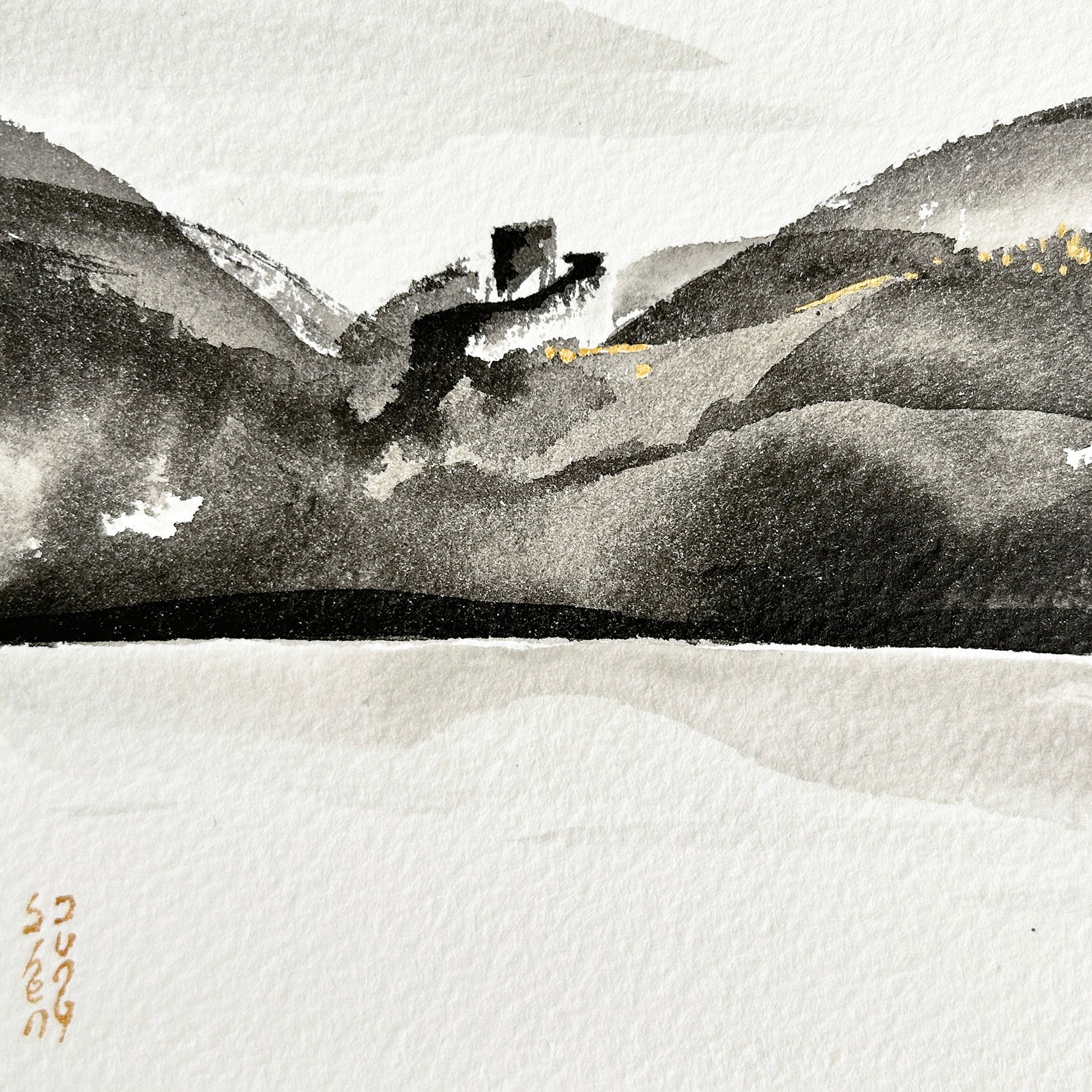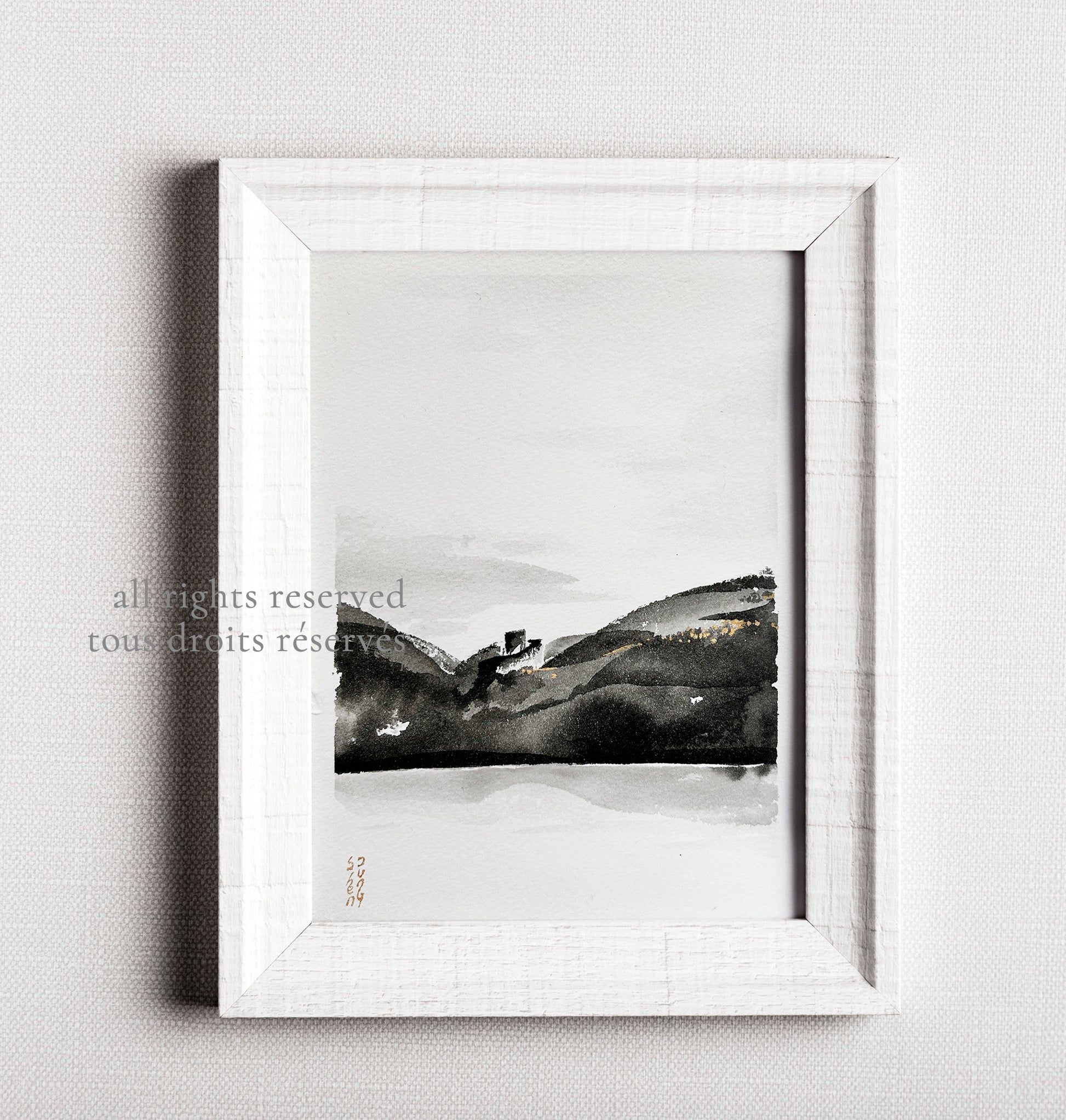 • Peinture lavis en Encre de Chine et pigment doré sur papier Arches
