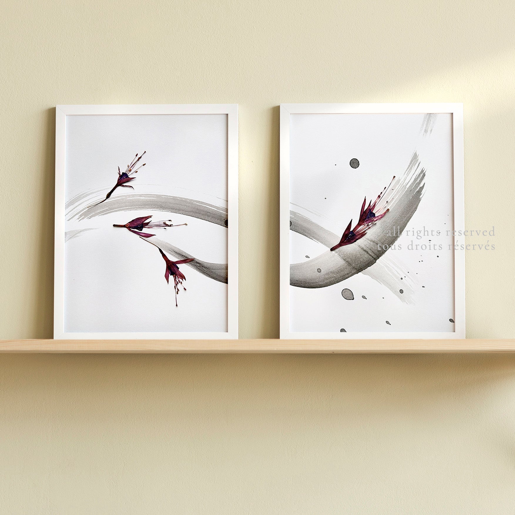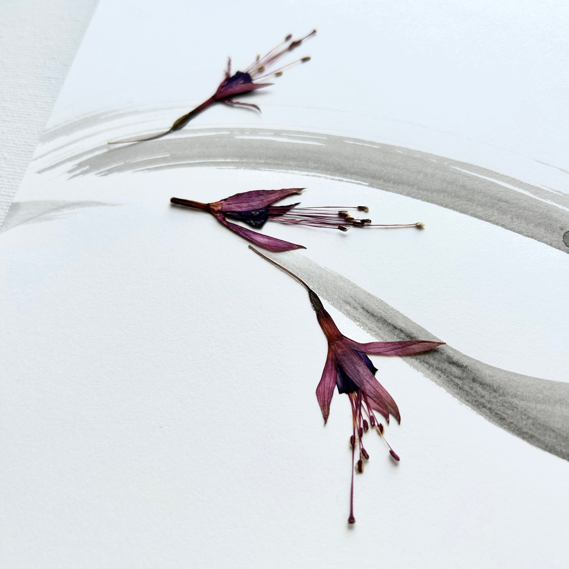 Découvrez ces petits tableau Diptyque Fuchsia. Créé avec soin à partir d'herbiers et de la technique du lavis. Le fuchsia est une plante qui fleurit chaque année dans mon jardin. Sa forme dynamique m'inspire beaucoup dans la création, avec des mouvements semblables à des danses...