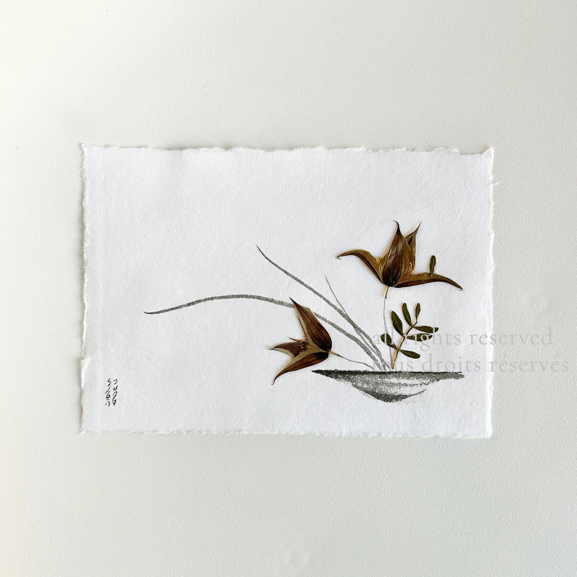 Ma série de lavis-herbier, Jardin Ikebana. Une série en lien avec ma série Lavis-herbier. "Ikebana" (生け花) est l'art floral japonais d'une élégance incomparable, signifiant "l'art de faire vivre les fleurs".