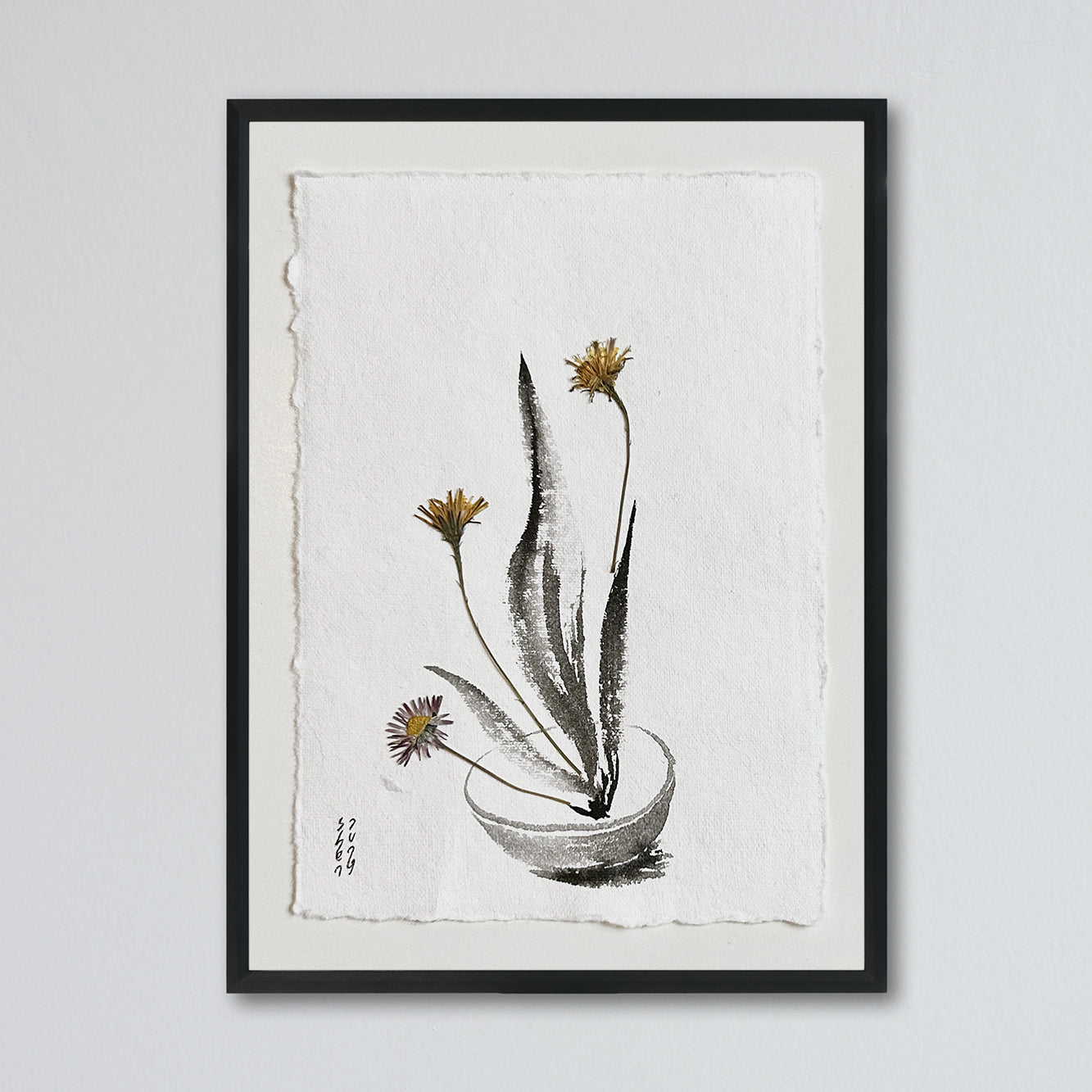 Découvrez ma série de lavis-herbier, Jardin Ikebana. Une série en lien avec ma série Lavis-herbier. "Ikebana" (生け花) est l'art floral japonais d'une élégance incomparable, signifiant "l'art de faire vivre les fleurs".