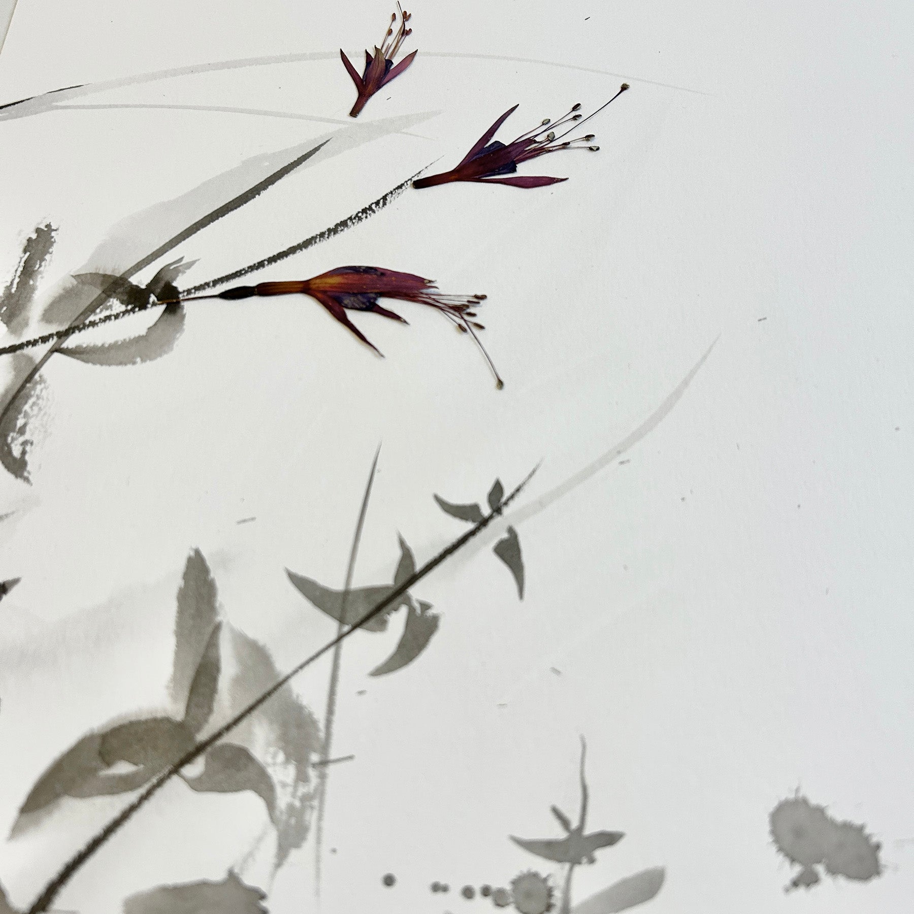 Découvrez ces petits tableau Diptyque Fuchsia. Créé avec soin à partir d'herbiers et de la technique du lavis. Le fuchsia est une plante qui fleurit chaque année dans mon jardin. Sa forme dynamique m'inspire beaucoup dans la création, avec des mouvements semblables à des danses...