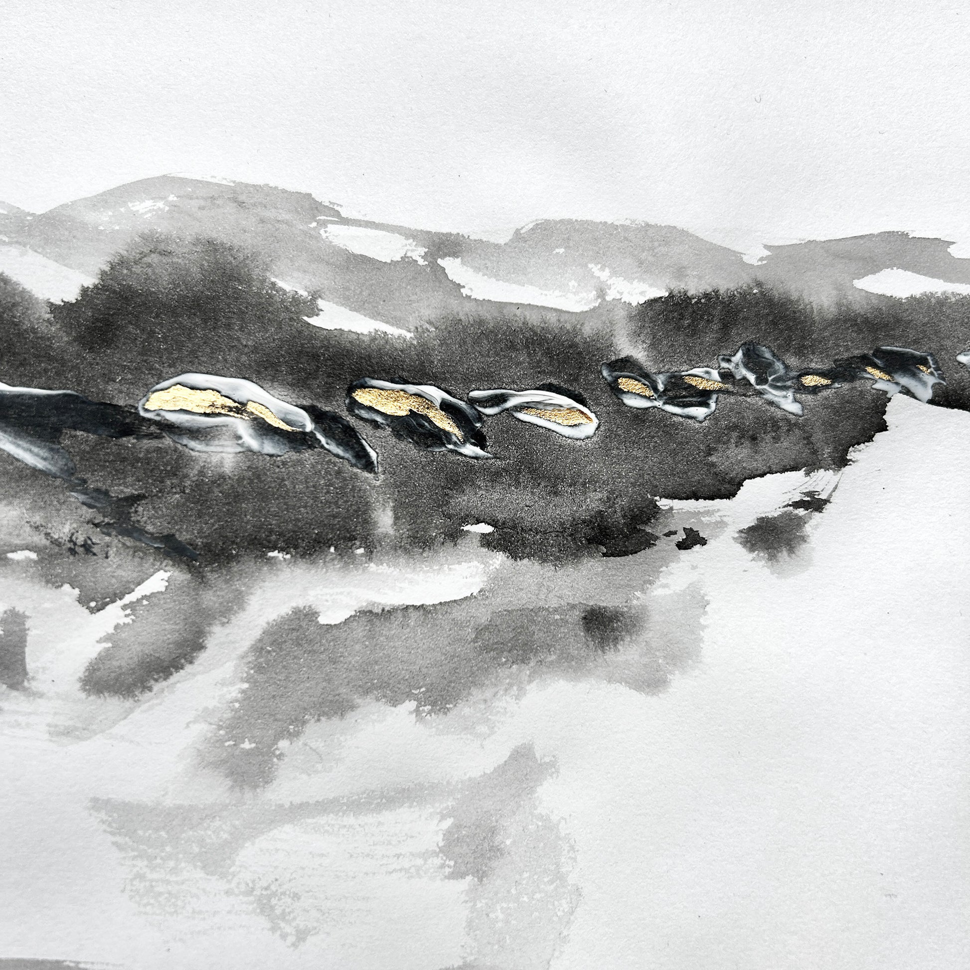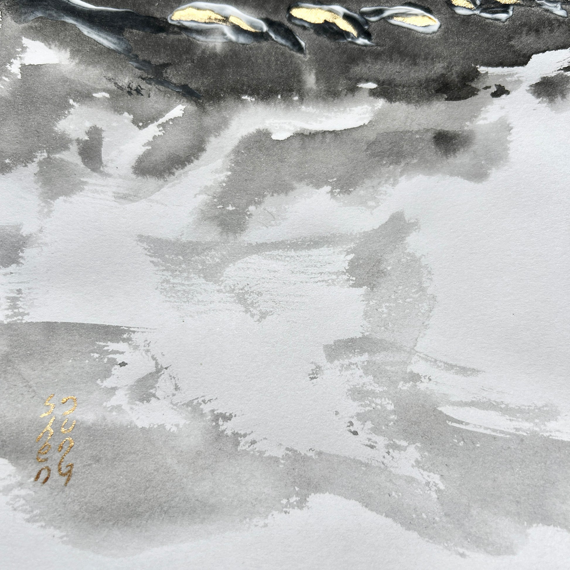 • Peinture lavis en Encre de Chine & Pigment doré & Pâte texture