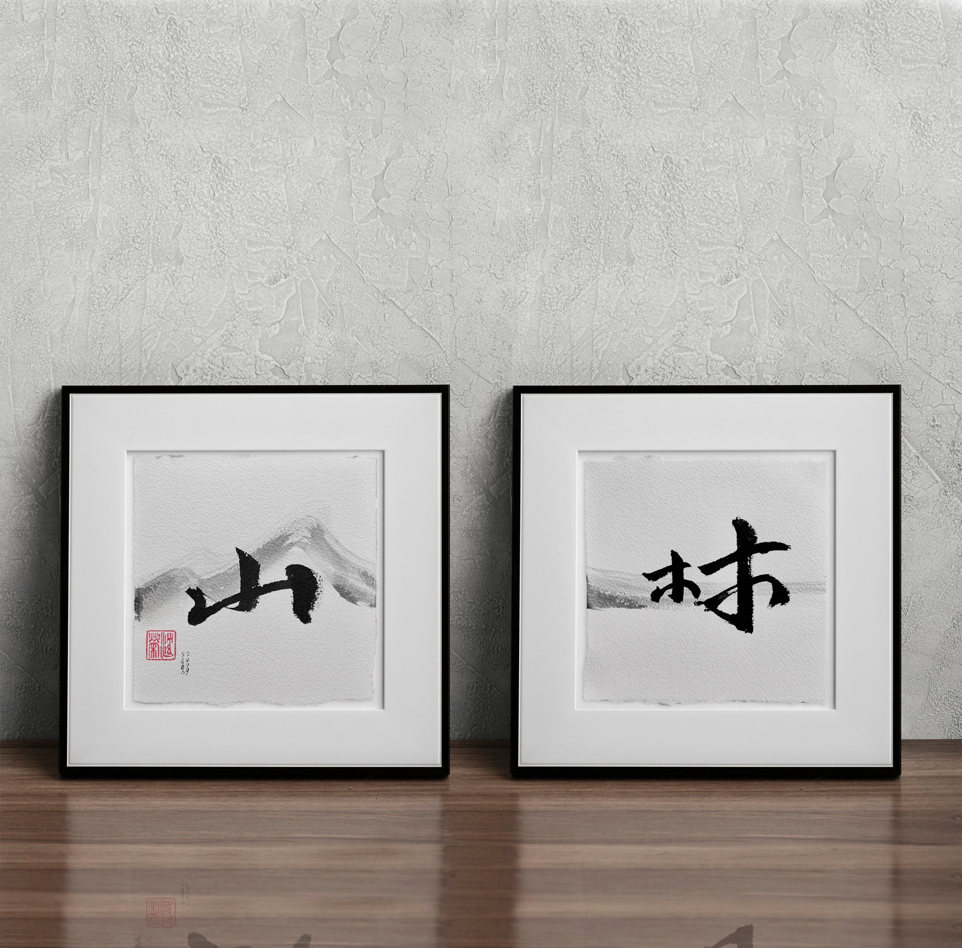 Lavis des mots - Diptyque Calligraphie - Montagne & Forêt