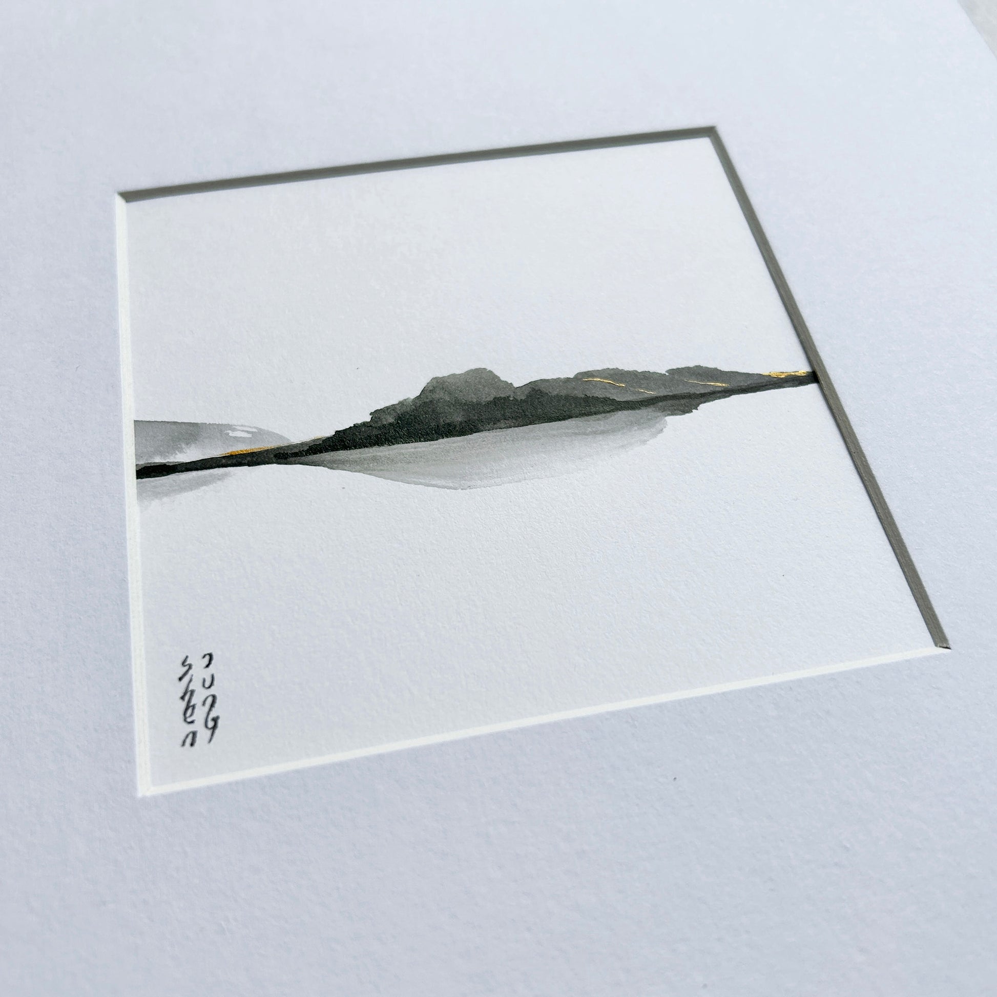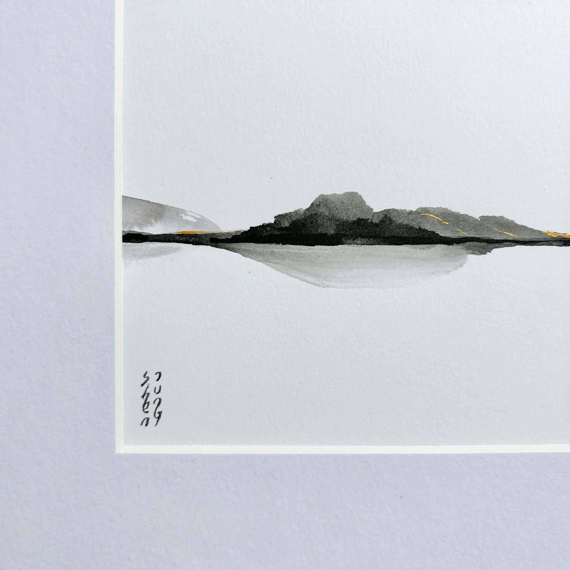 • Peinture lavis en Encre de Chine & Pigment doré sur papier lavis technique