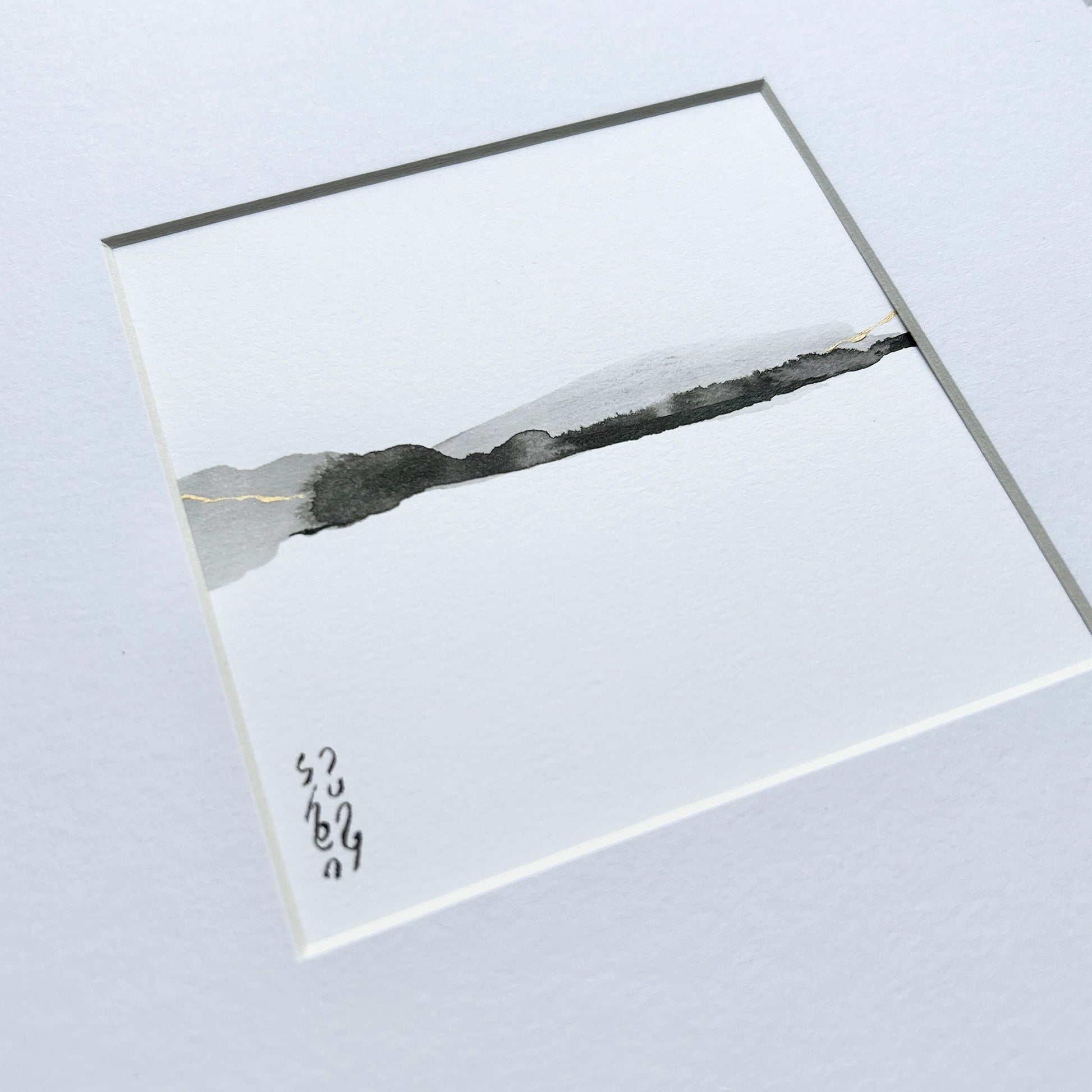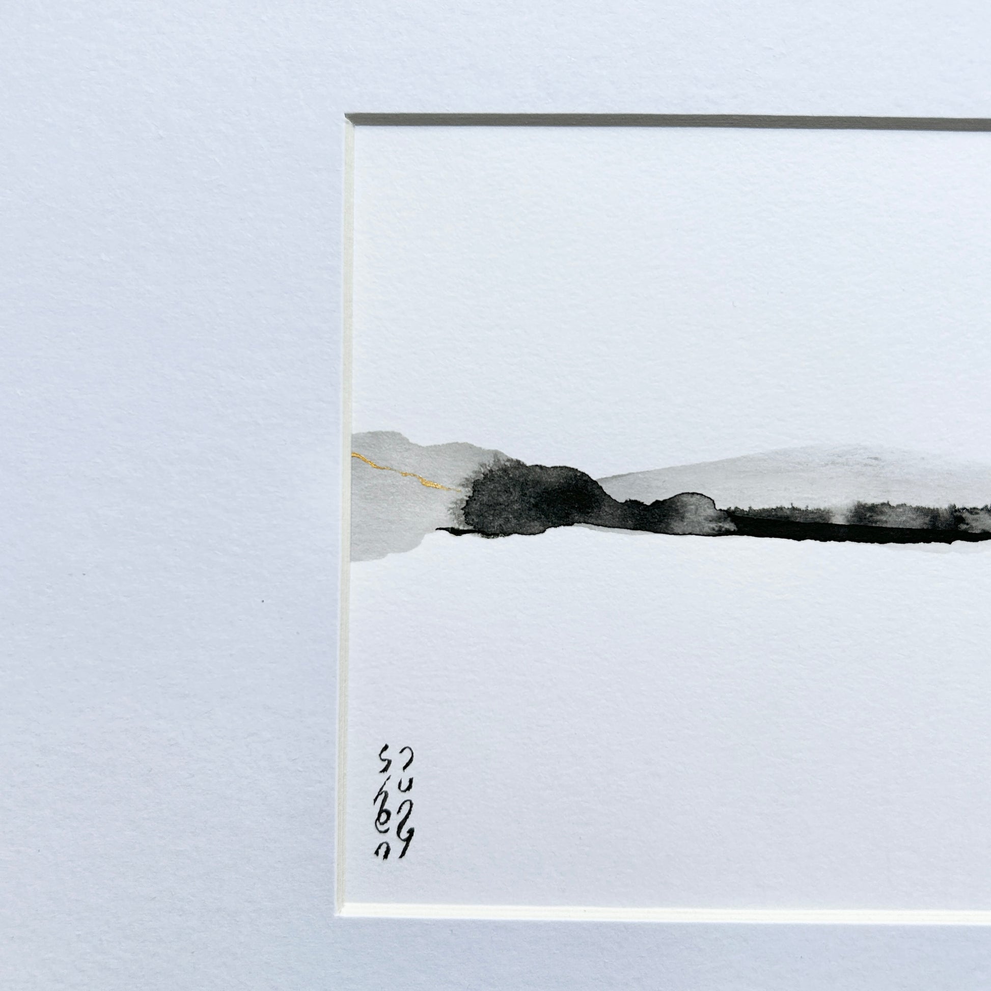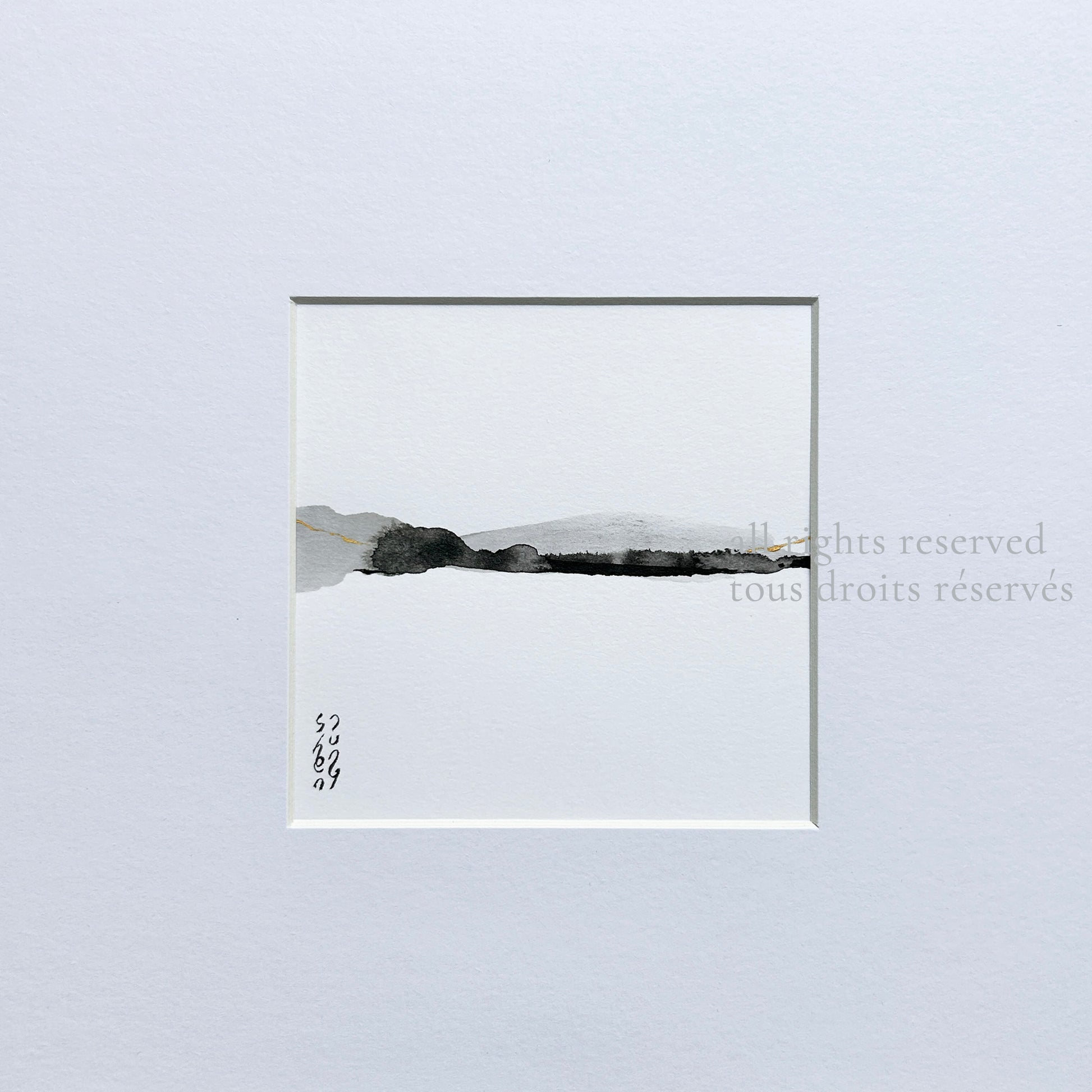 • Peinture lavis en Encre de Chine & Pigment doré sur papier lavis technique