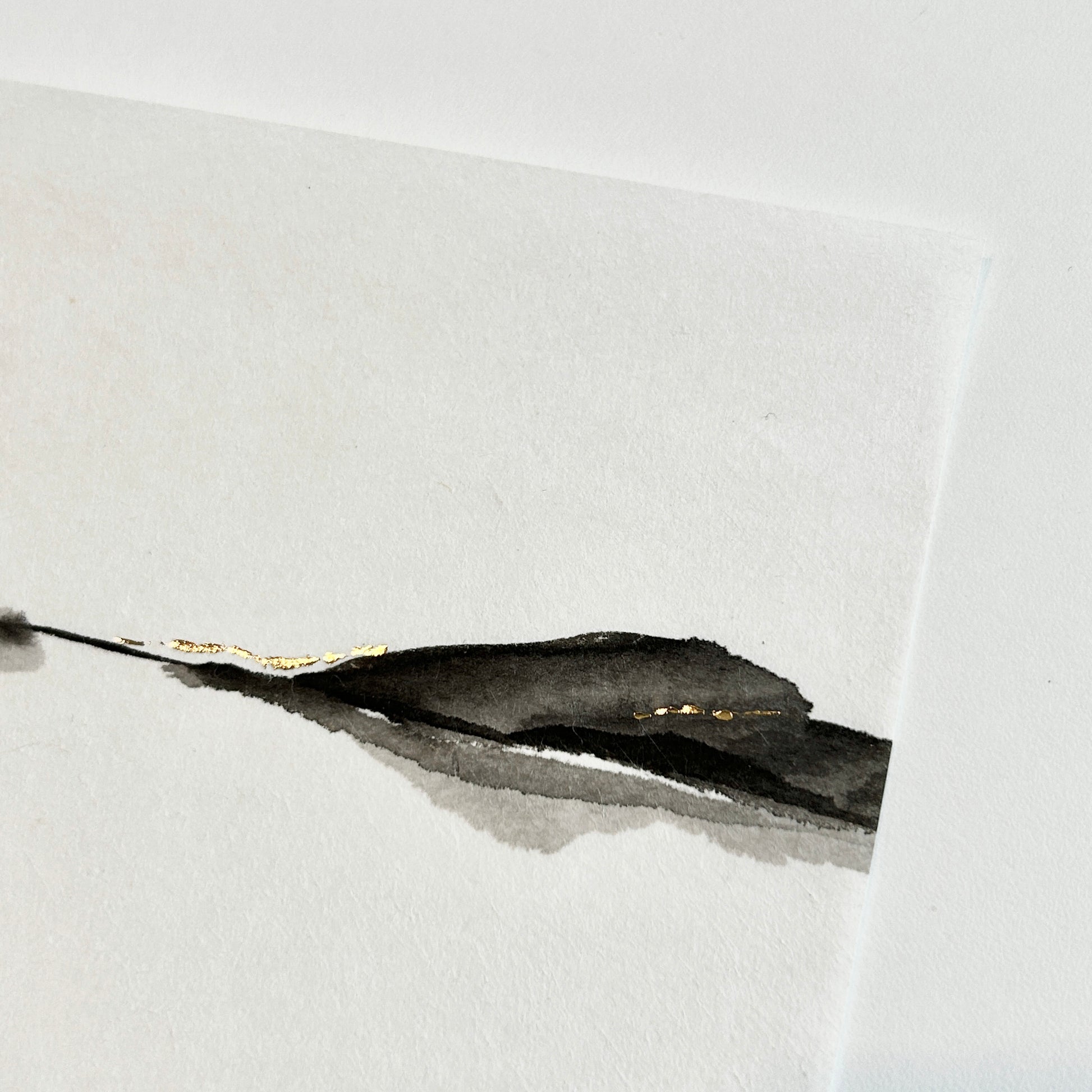 Une nouvelle technique pour cette série, l'utilisation de feuille d'or sur papier Xuan, apportant un effet précieux.