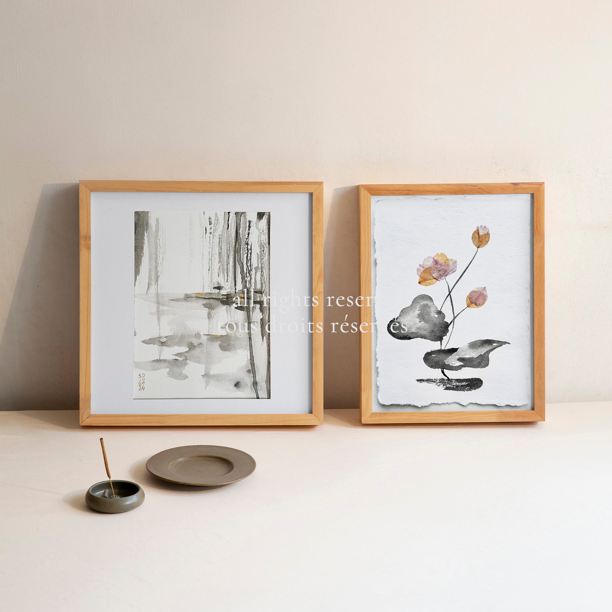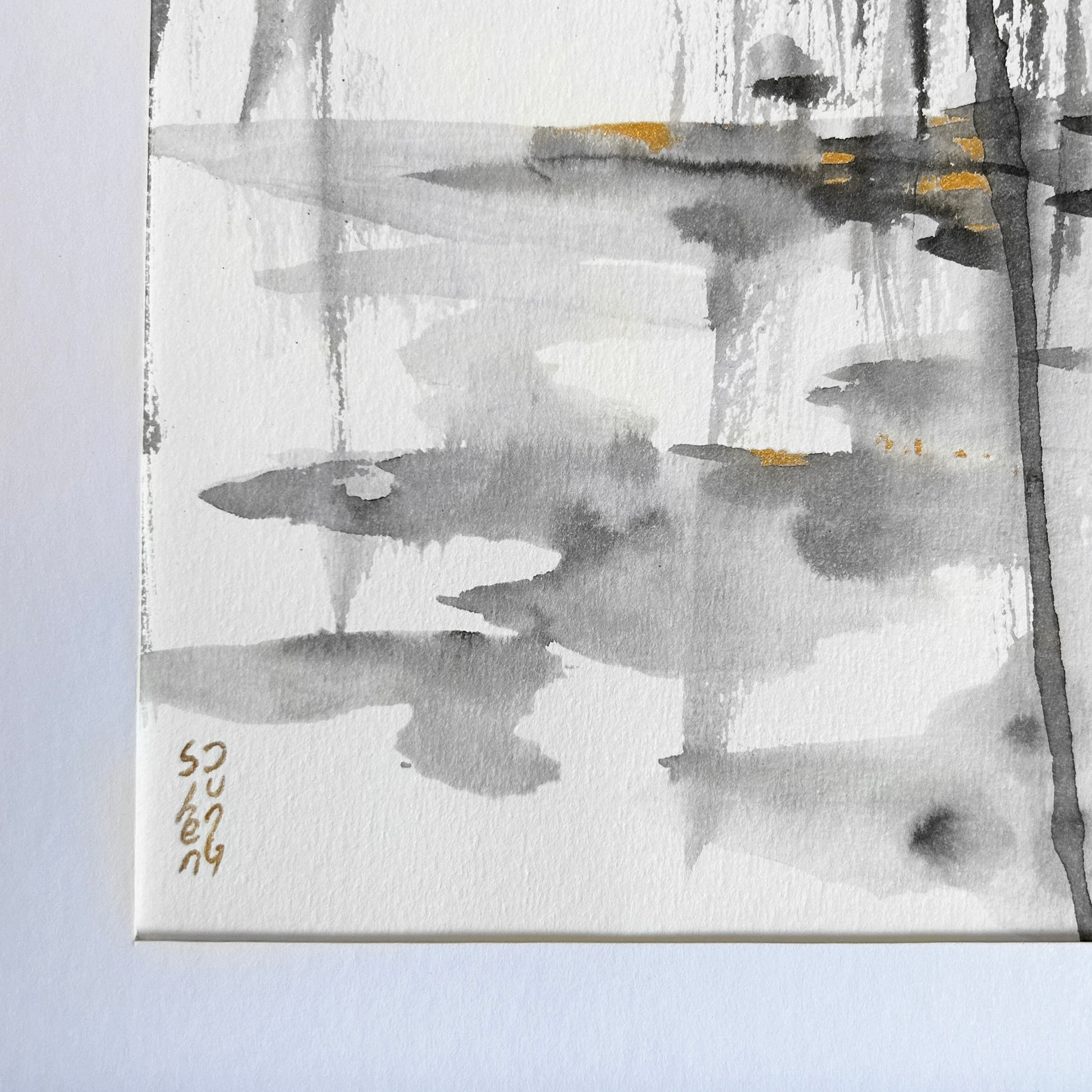 • Peinture lavis en Encre de Chine & Pigment doré