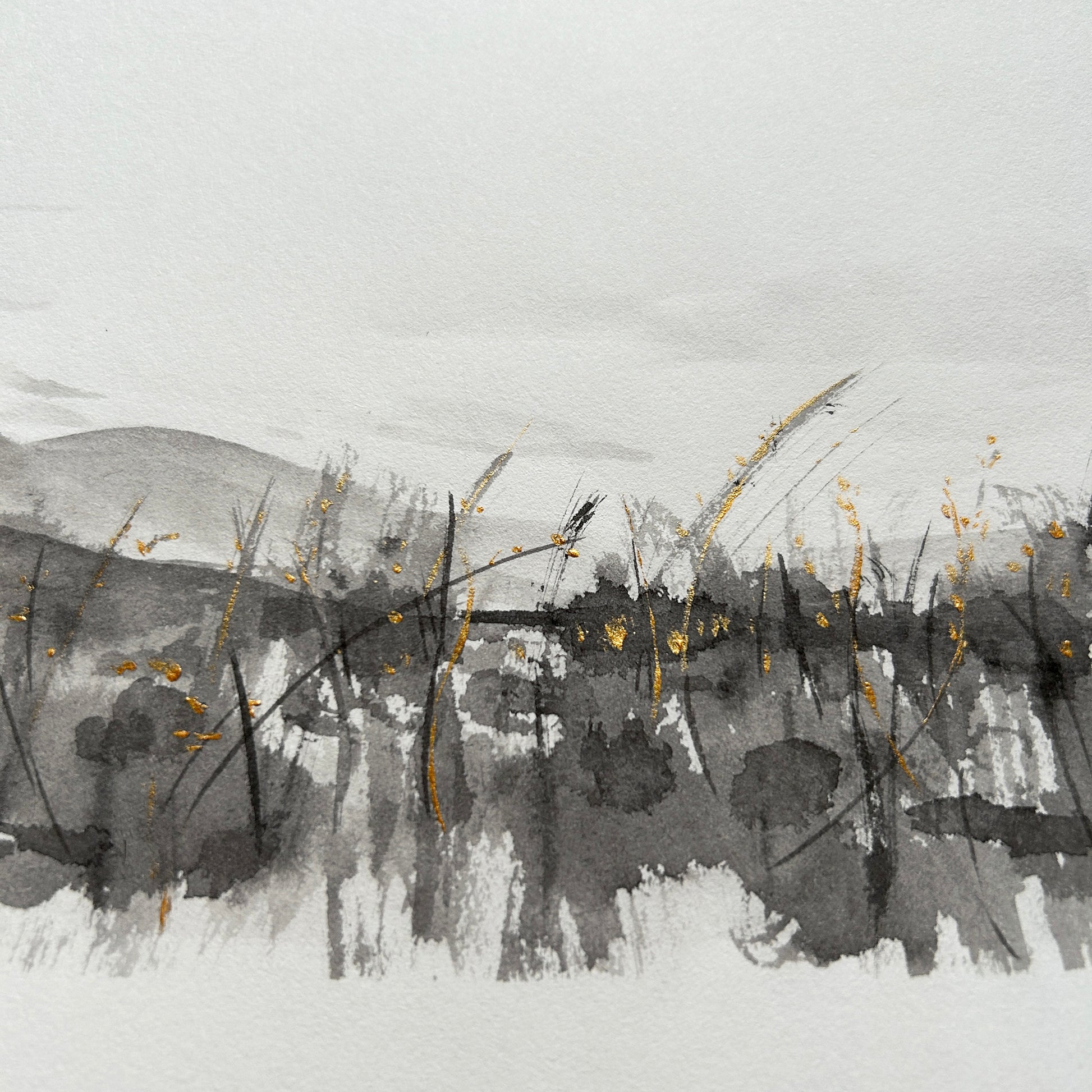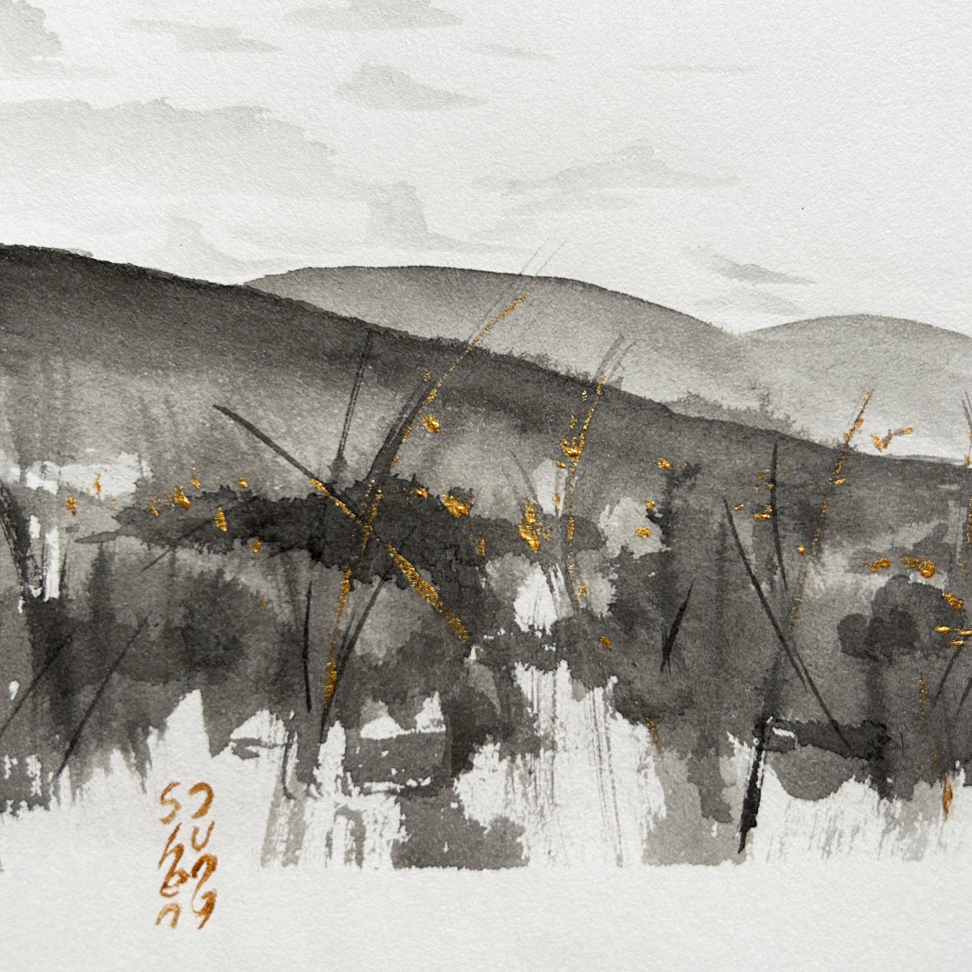• Peinture lavis en Encre de Chine & Pigment doré
